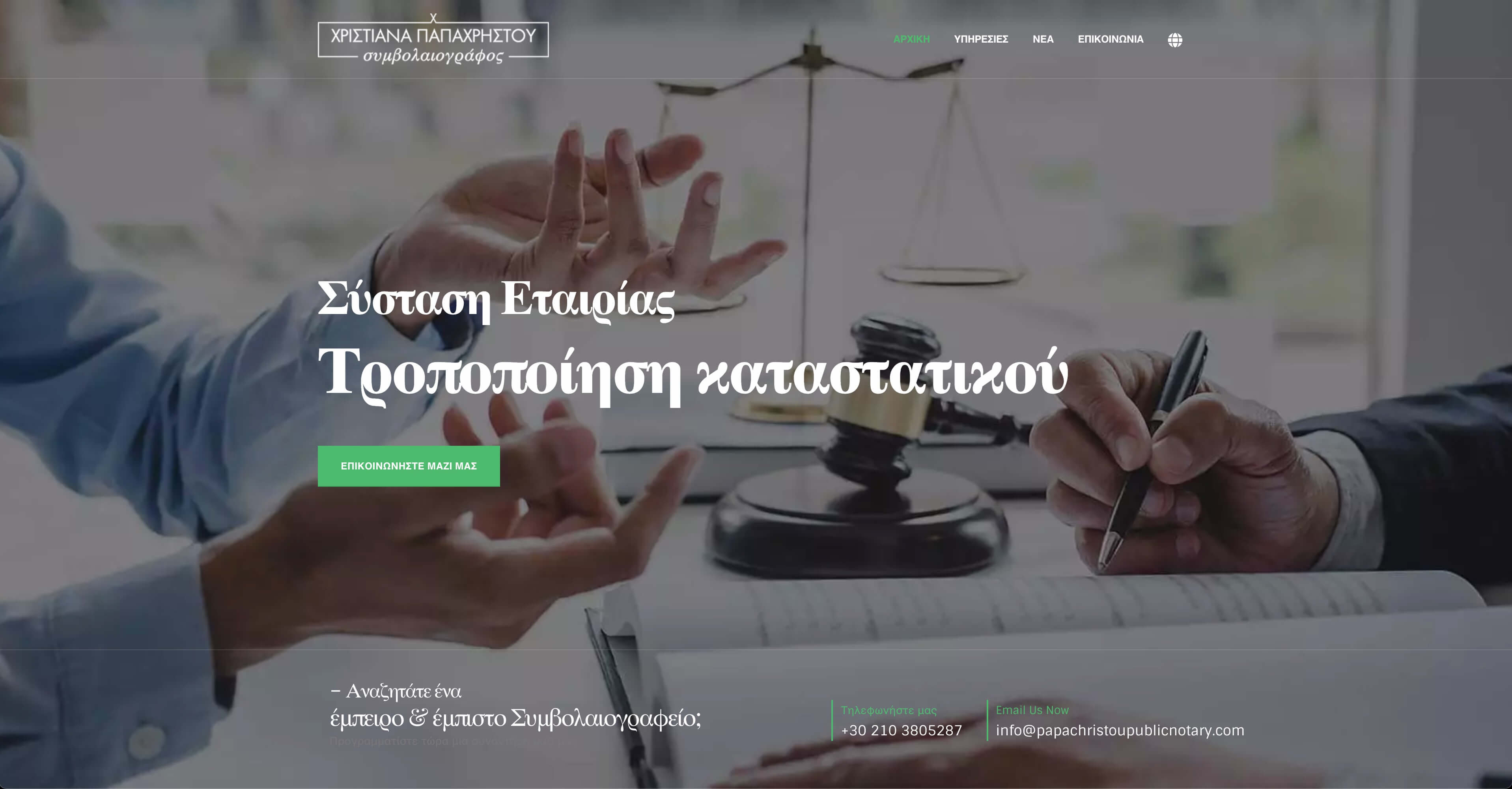 Η νέα ιστοσελίδα του συμβολαιογραφείου της κας Χριστιάνας Παπαχρήστου είναι πλέον πλήρως λειτουργική και διαθέσιμη στη διεύθυνση https://www.papachristoupublicnotary.com