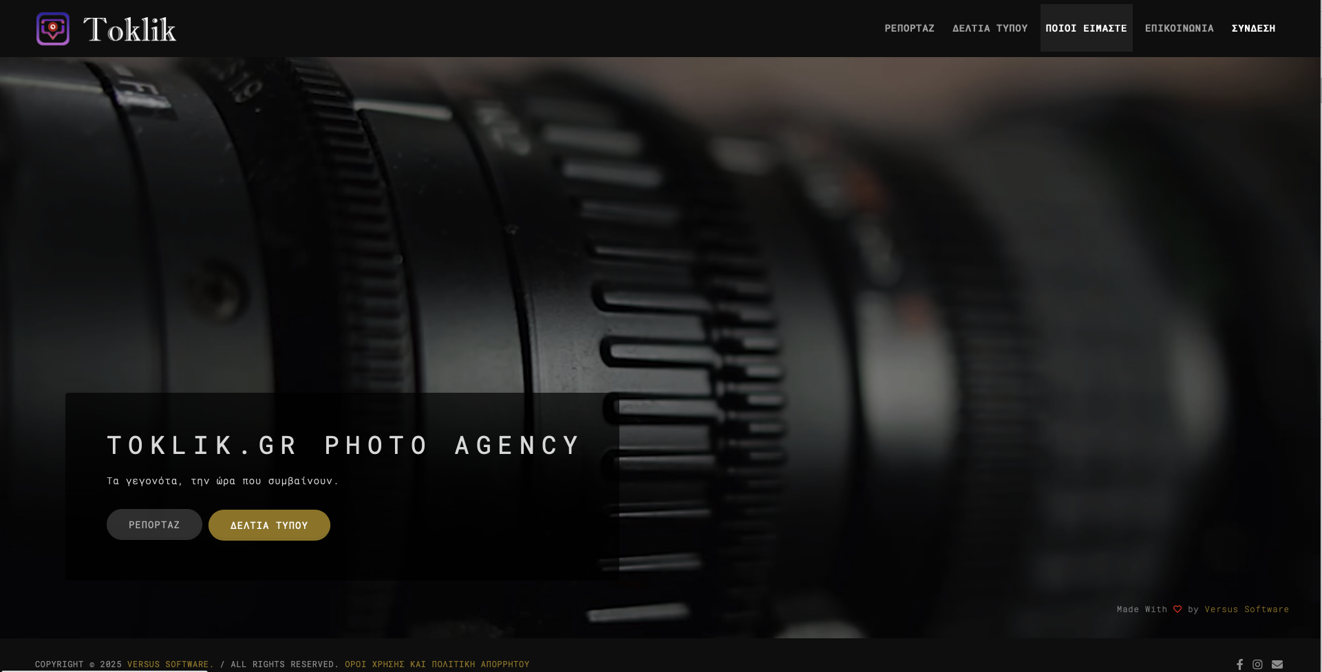 Με μεγάλη χαρά ανακοινώνουμε ότι η ομάδα μας ολοκλήρωσε επιτυχώς ένα ακόμα απαιτητικό project: την δημιουργία της νέας ιστοσελίδας για το φωτογραφικό πρακτορείο toklik.gr.