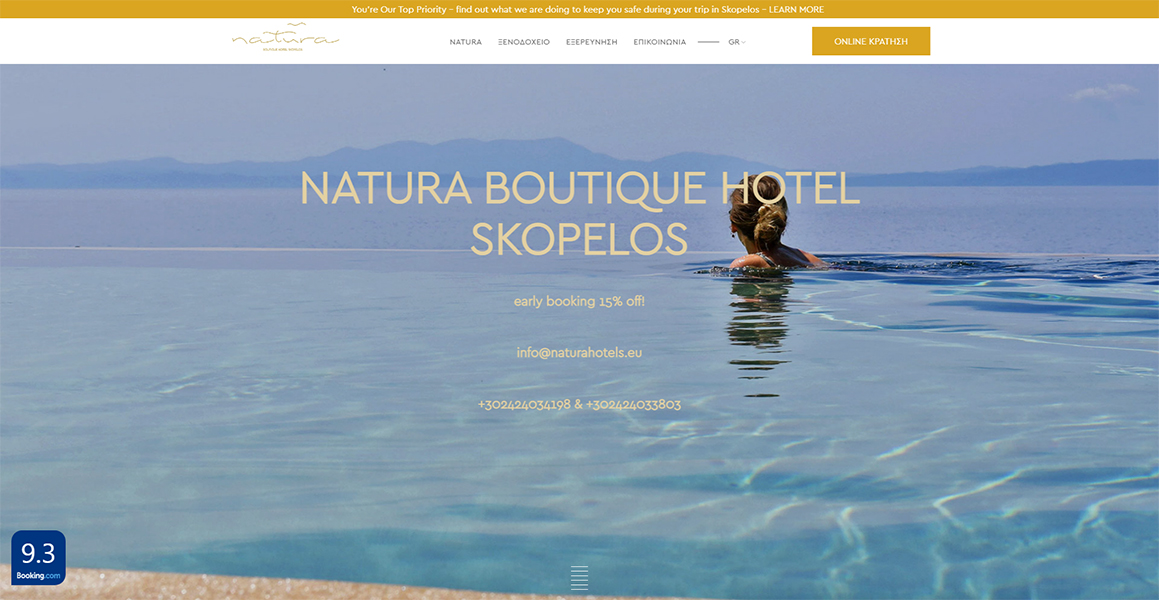 To Νatura Boutique Hotel Skopelos σχεδιάστηκε από τον ιδιοκτήτη και αρχιτέκτονα Χάρη Καραμεσίνη (Liberty construction S.M.P.C) με τη φιλοδοξία να σας χαρίσει την υπέρτατη εμπειρία διαμονής σε ένα κατάλυμα που το κάλος του φυσικού τοπίου αντανακλά στην μινιμαλιστική αρχιτεκτονική που σέβεται την παράδοση των Σποράδων.